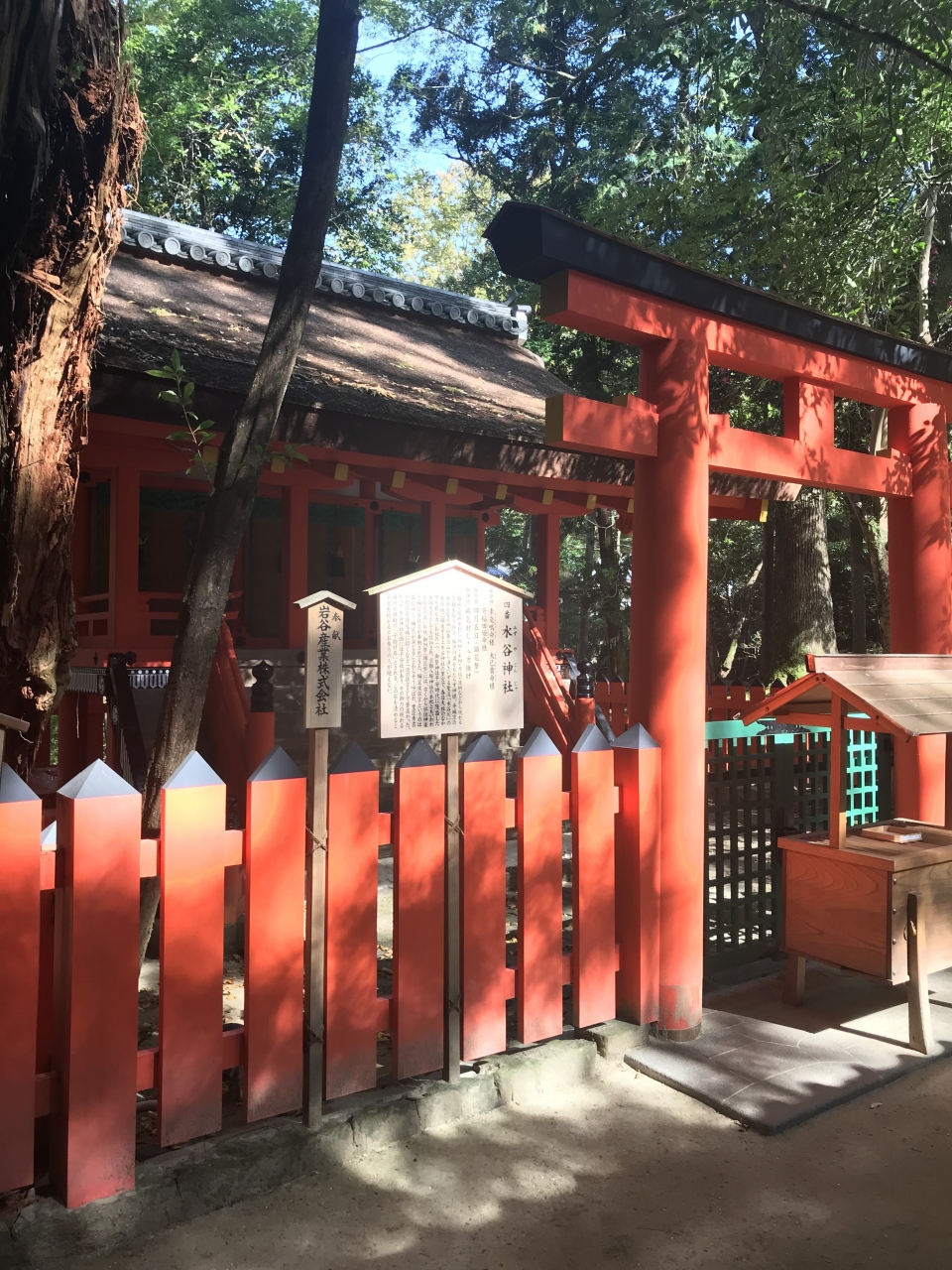春日大社の境内の北端にある立派な水谷神社は、子宝の神様として信仰を集めています。神社の歴史については不詳な点が多くて、創建の時期等もはっきりとはしていないようです。神社の本殿正面にある「子授石」の存在でも有名になっていて、若い夫婦の方々にとっての「パワースポット」となっているようです。