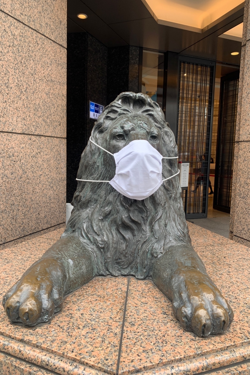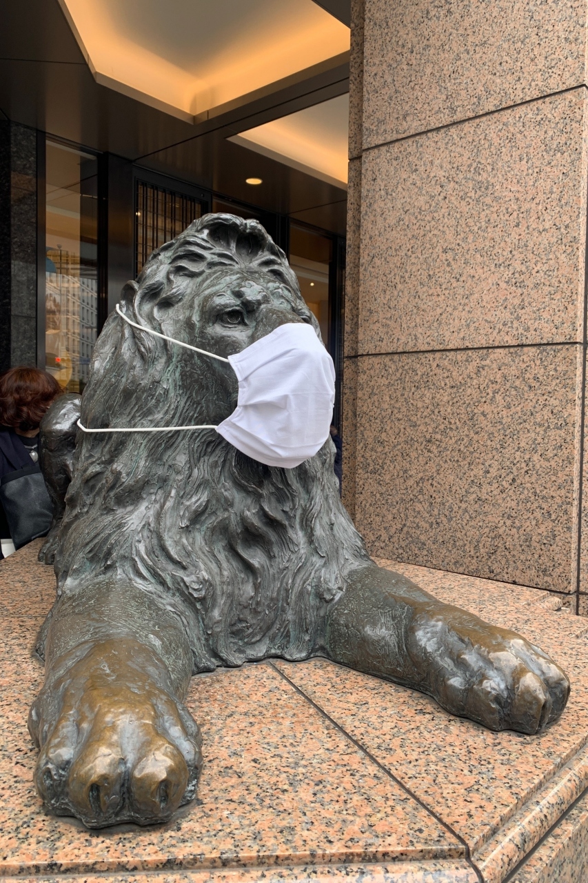 この新型コロナウイルス感染拡大を受け、銀座三越のライオンもマスクをしていました。