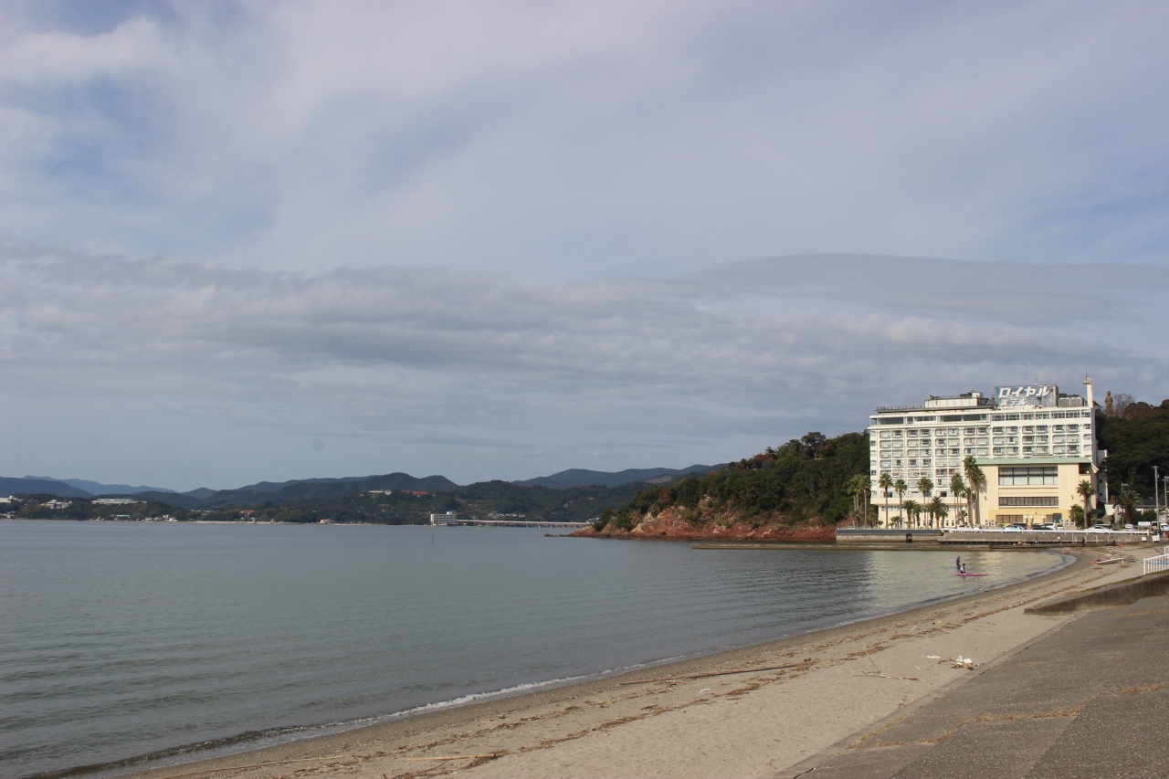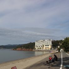 舘山寺の門前町のような商店街近くのビーチです。