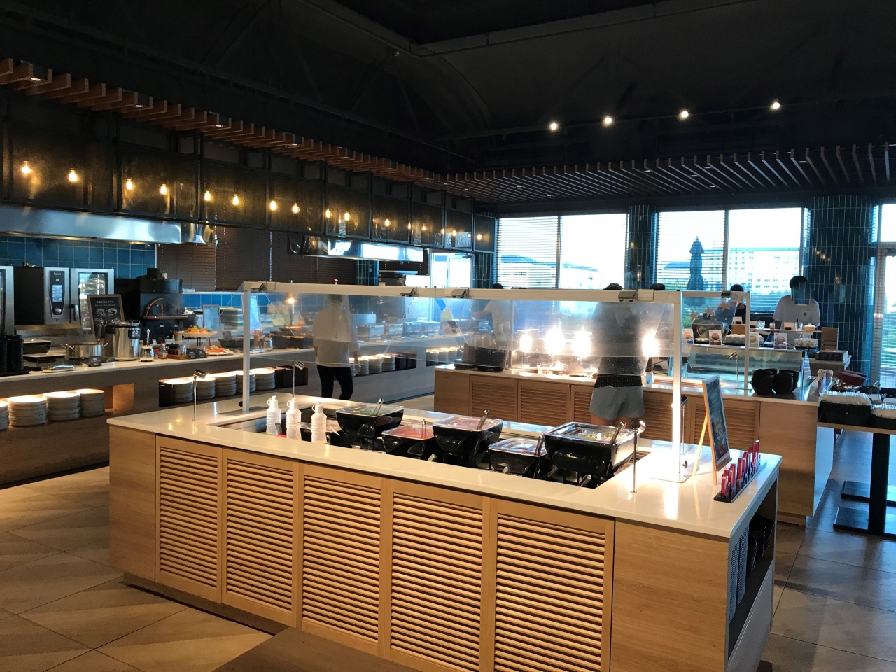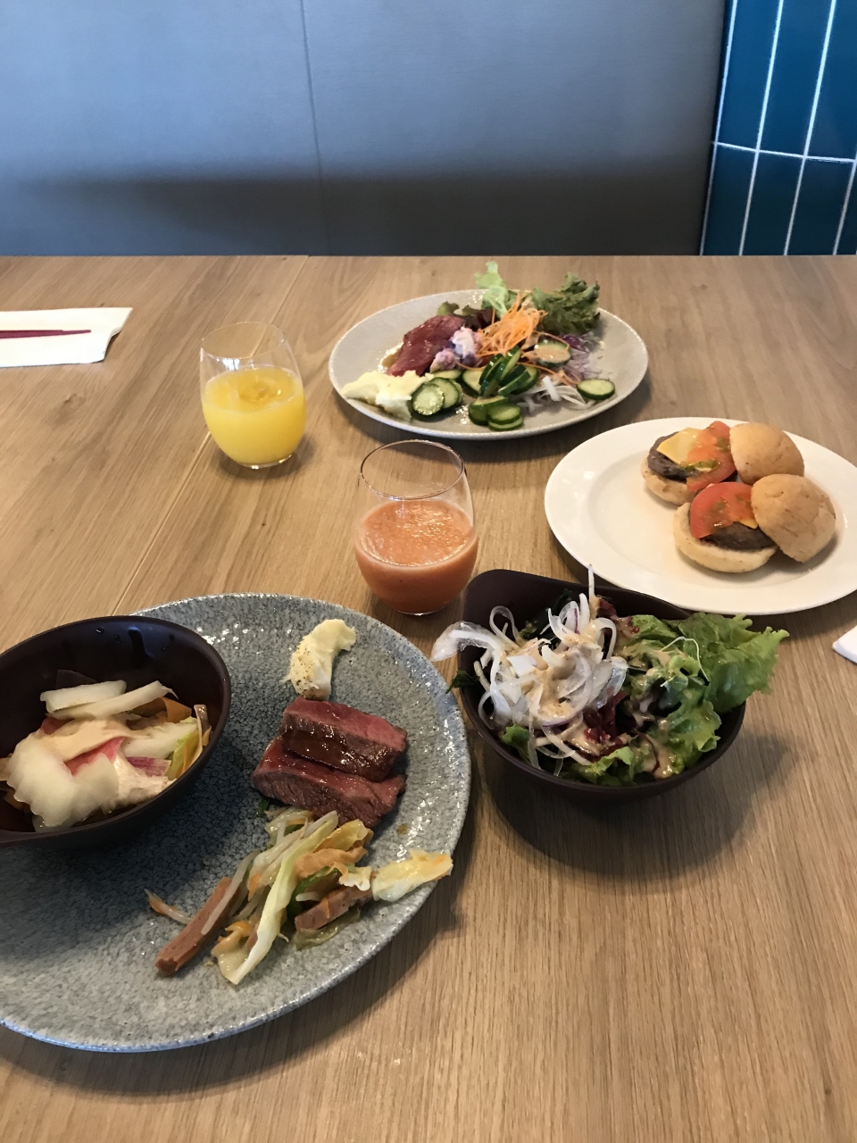 オキナワマリオットの1階にあるレストランです。朝食を利用しました。朝食はビュッフェスタイルで、定番メニューのほか、ハンバーガーやステーキがあり、バラエティに富んだラインナップでした。朝からアイスクリームが食べられたのも嬉しかったです。