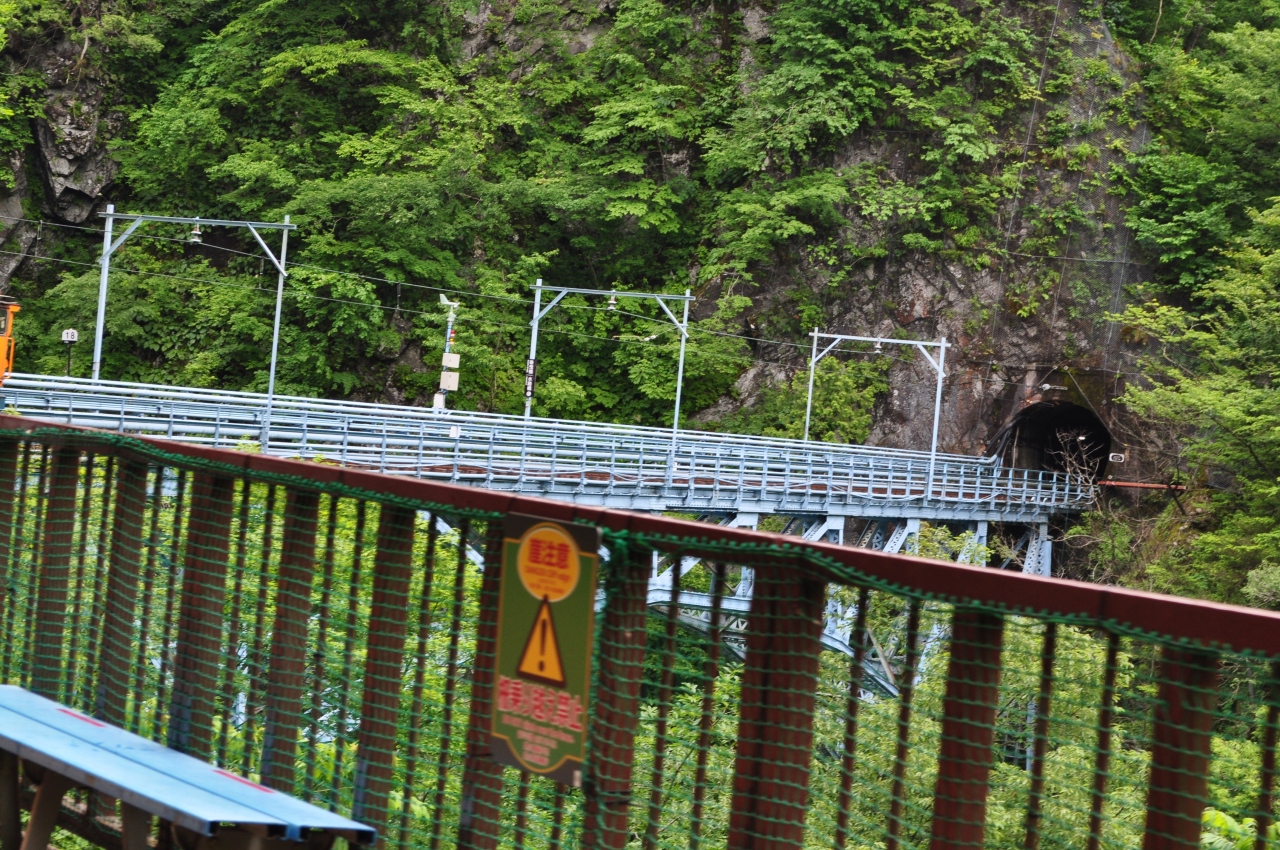 2020年6月に観光で黒部峡谷を訪れた際にトロッコ電車から見学しました。「黒薙駅」を過ぎてすぐの場所にある鉄橋です。水色に塗られているので分かり易いです。この鉄橋もまたなかなかの高さがあり、上を走っているときはスリリングな体験となりました。山側には「跡曳水路橋」と言われる水をひくための水路橋もあるので是非とも忘れずに見ていただければと思います。ノスタルジックな雰囲気が良かったです。
