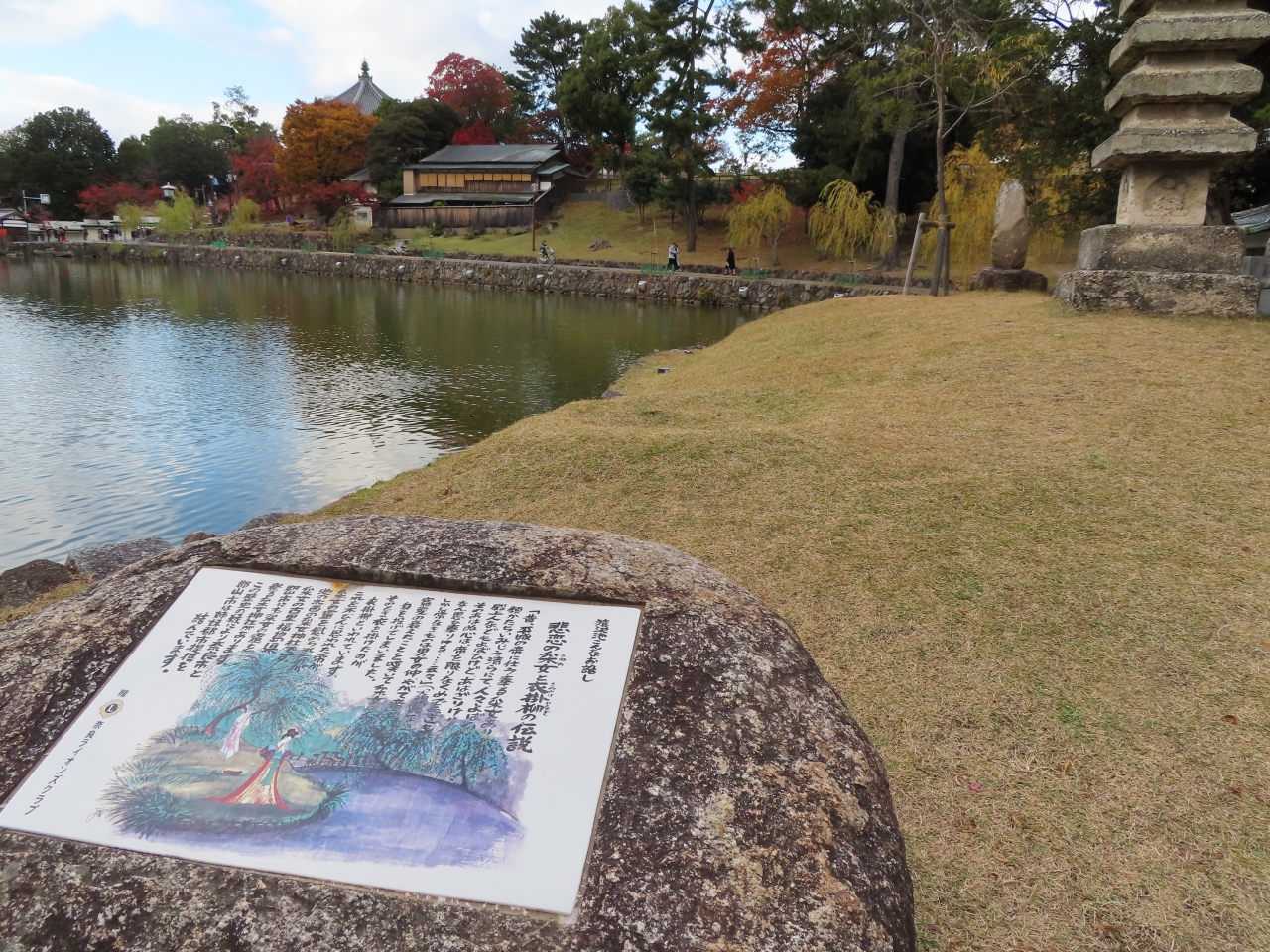 興福寺のそばにある周径360mしかない小さな池なのですが、興福寺の五重塔が近くにあるため、とても風情が感じられるスポットです。