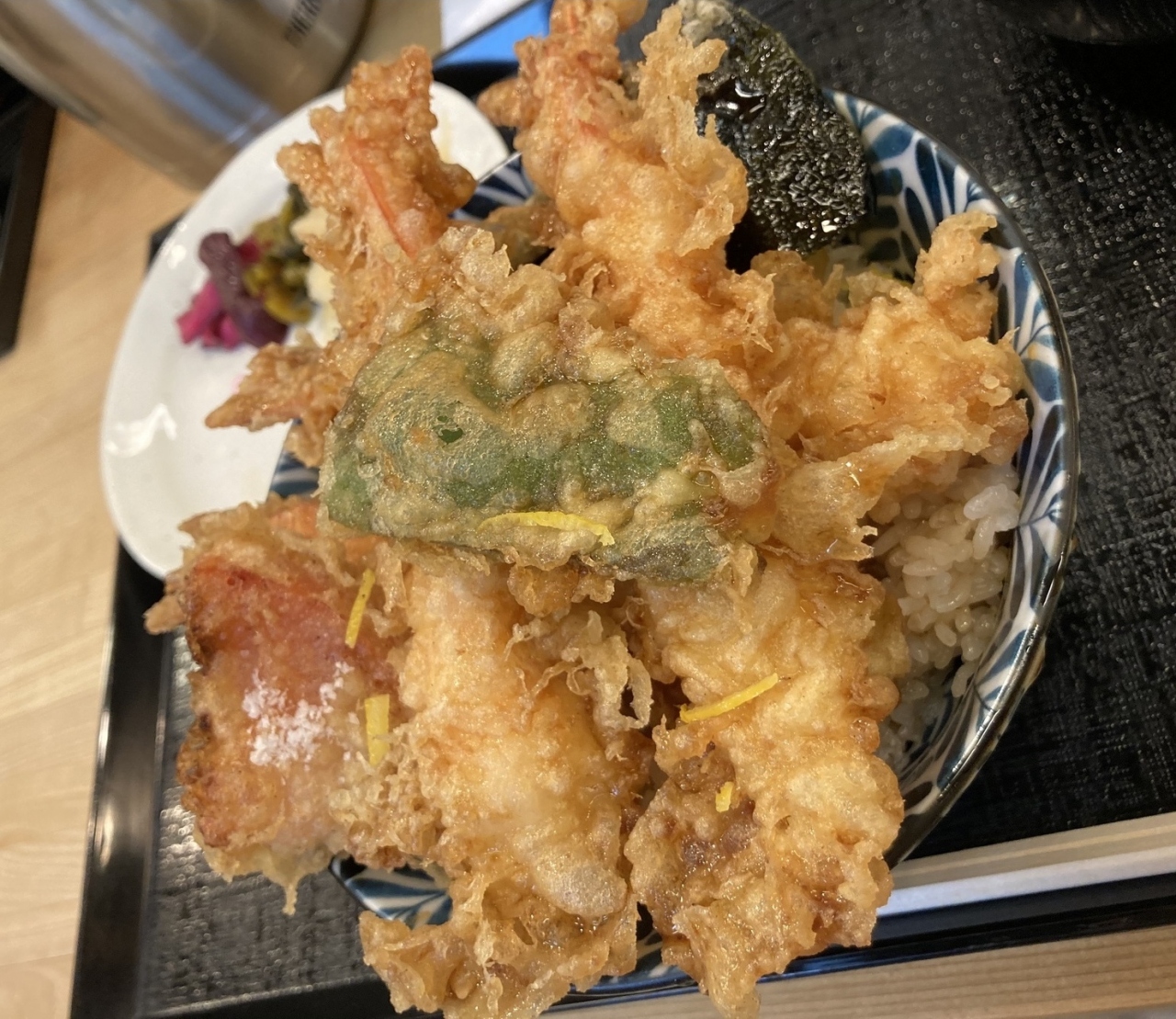 おいしいお昼を食べてきました。ランチは天丼、エビ天丼、穴子天丼の3種のみです。