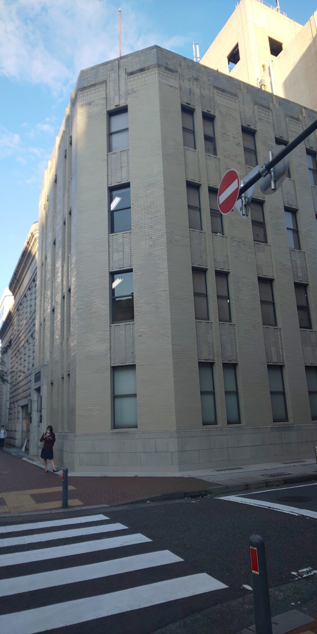 馬車道にはたくさんのレトロ建築がありますが、こちらはタイルで全面覆われた建築物となっています。