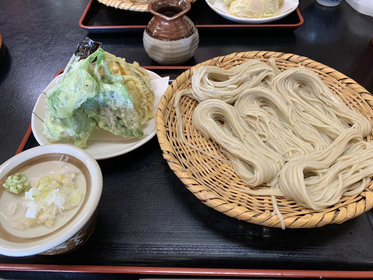 季節の天ざるそばを注文。とっても美味しいお蕎麦と初めて食べたリンゴの天ぷらが楽しかった。