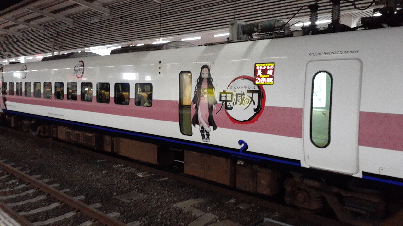 2020年11月1日現在、列車によっては「鬼滅の刃」ラッピング車両が使用されていました