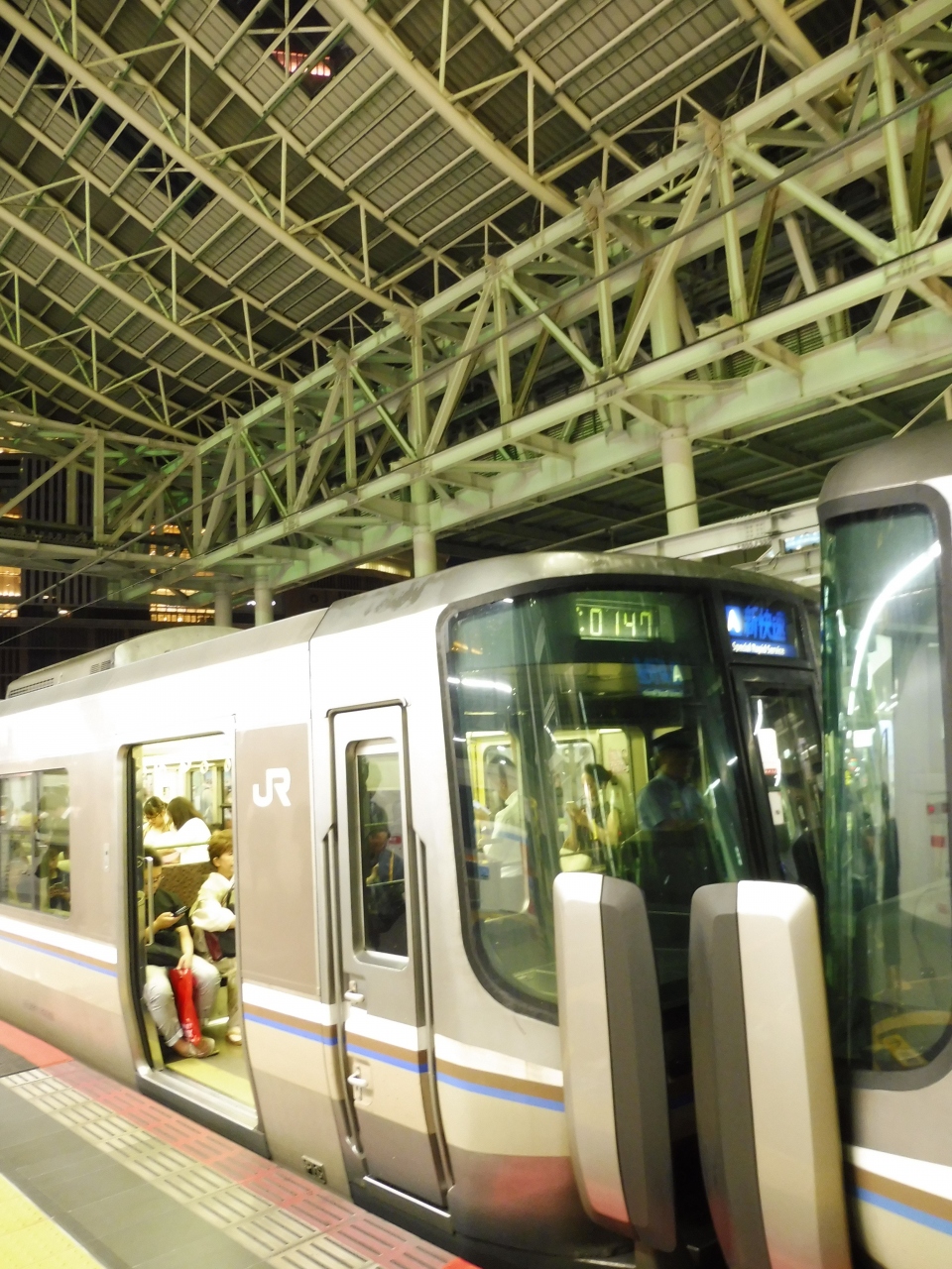 今回は米原駅18:17発の下り新快速電車で大阪駅まで向かいました。ちなみに大阪駅には19:45到着でした。