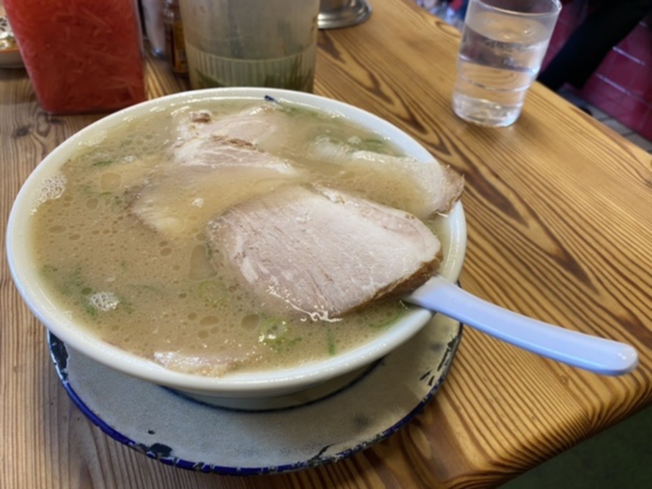 食べたのはチャーシュー麺700円!スープは濃厚でナイス。麺は普通の長浜麺よりは少し太めで柔らかい。もちろん替玉も!