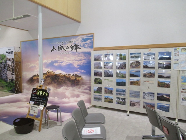 「山城の郷」にはレストランやお土産屋さん観光案内所などがあり、名城スタンプも設置されています。