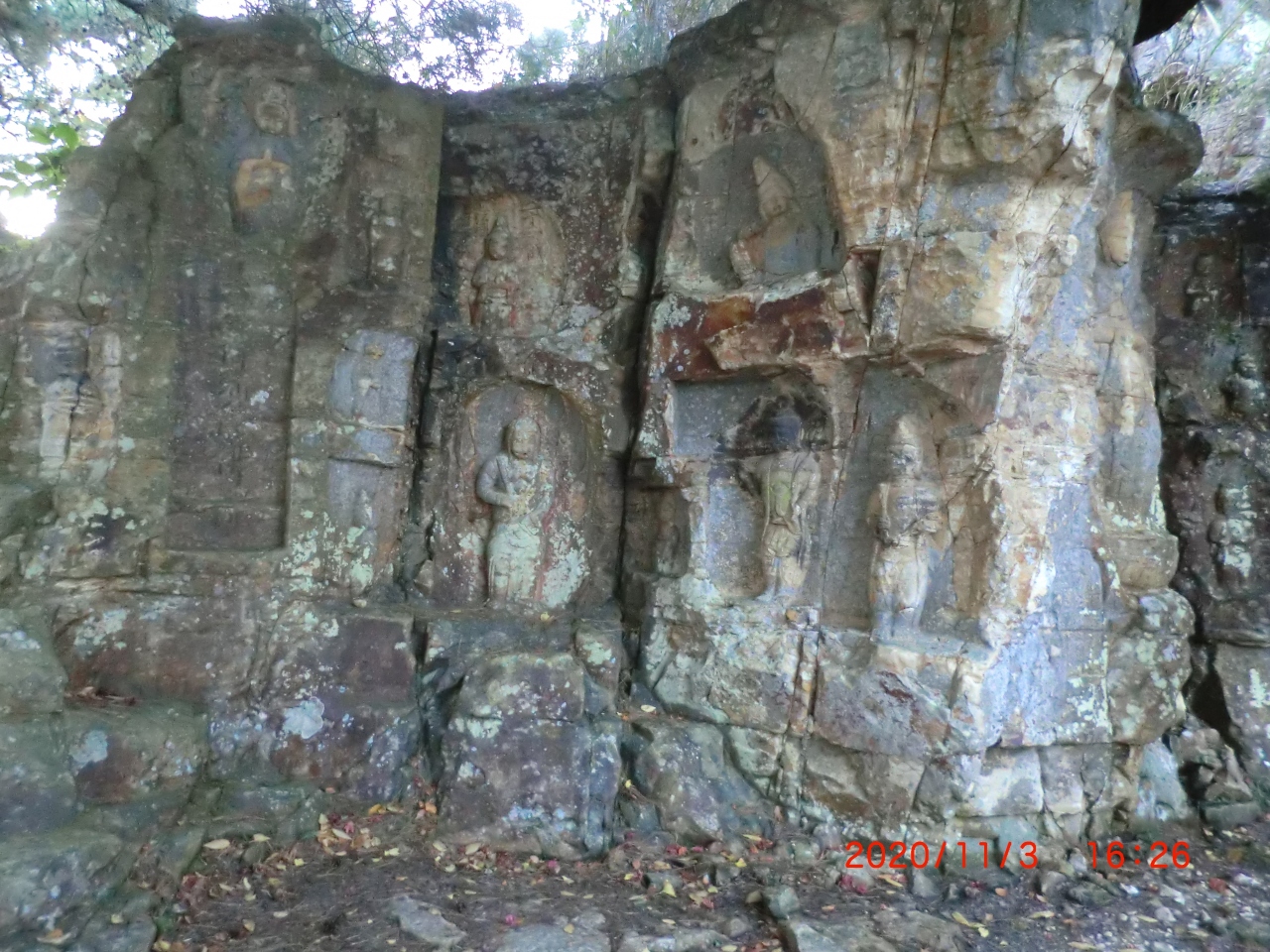 福島市の指定文化財で700年前の平安時代から鎌倉時代にかけて彫られ、「磨崖仏群」と言われ、約60体の像が確認されてるようです。行って見るとかなり形が崩れ、その数を確認できなかったです。又作る途中のような像もありました。
