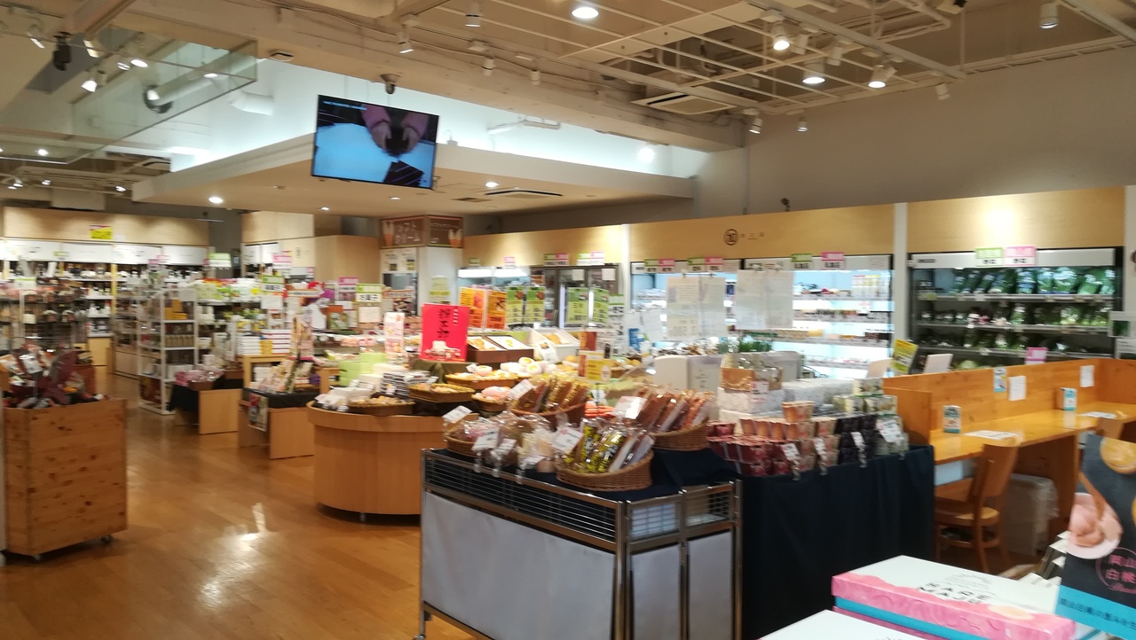 ふたつの県が一緒になったアンテナショップです。入口にはカニがケースに沢山並べられていました。生蟹でしょうか、一杯1万円。