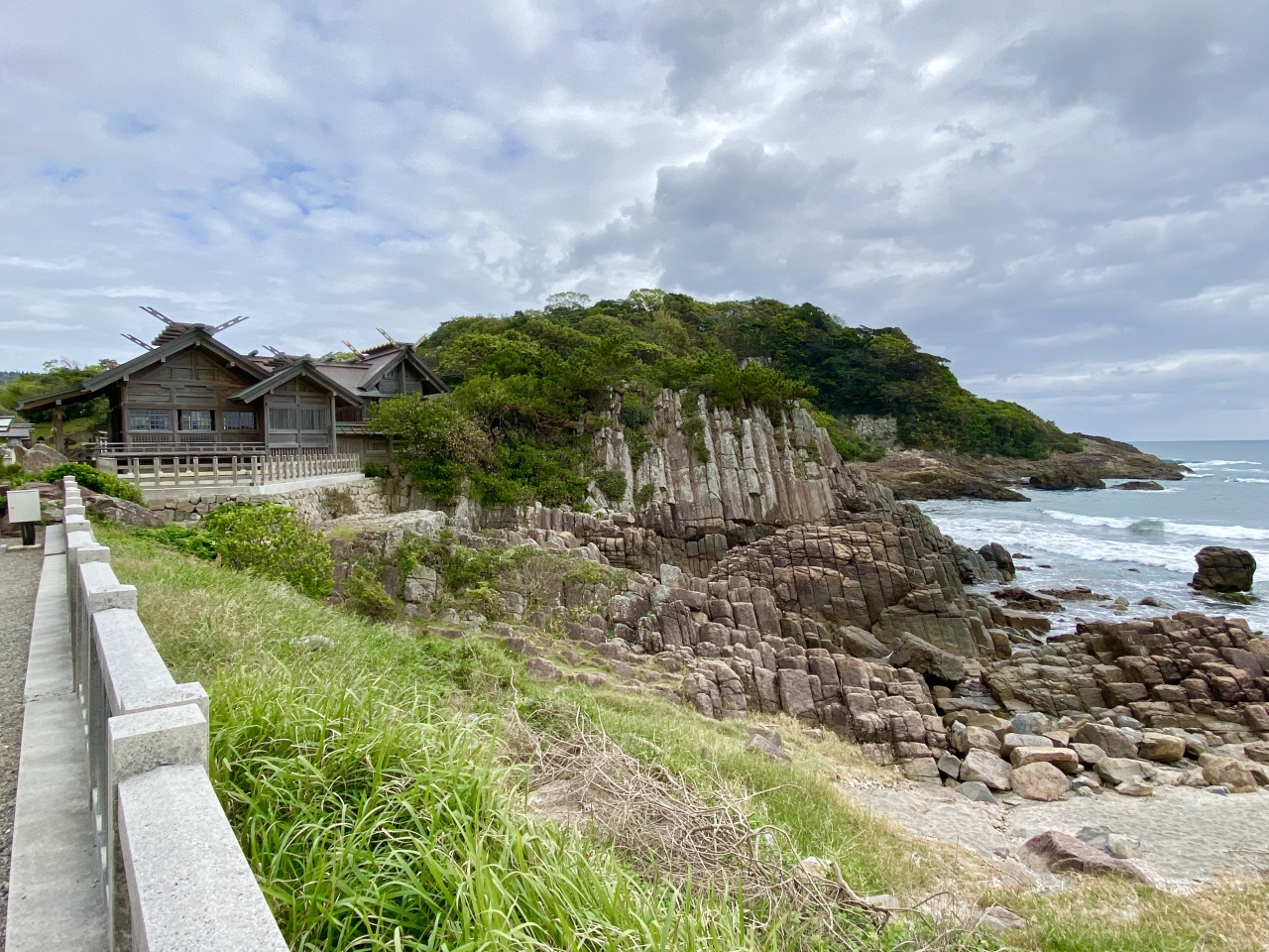 凄い柱状節理の所に建っており、昔の人はこういう場所に神が宿る雰囲気を感じたのであろうことが想像できます。