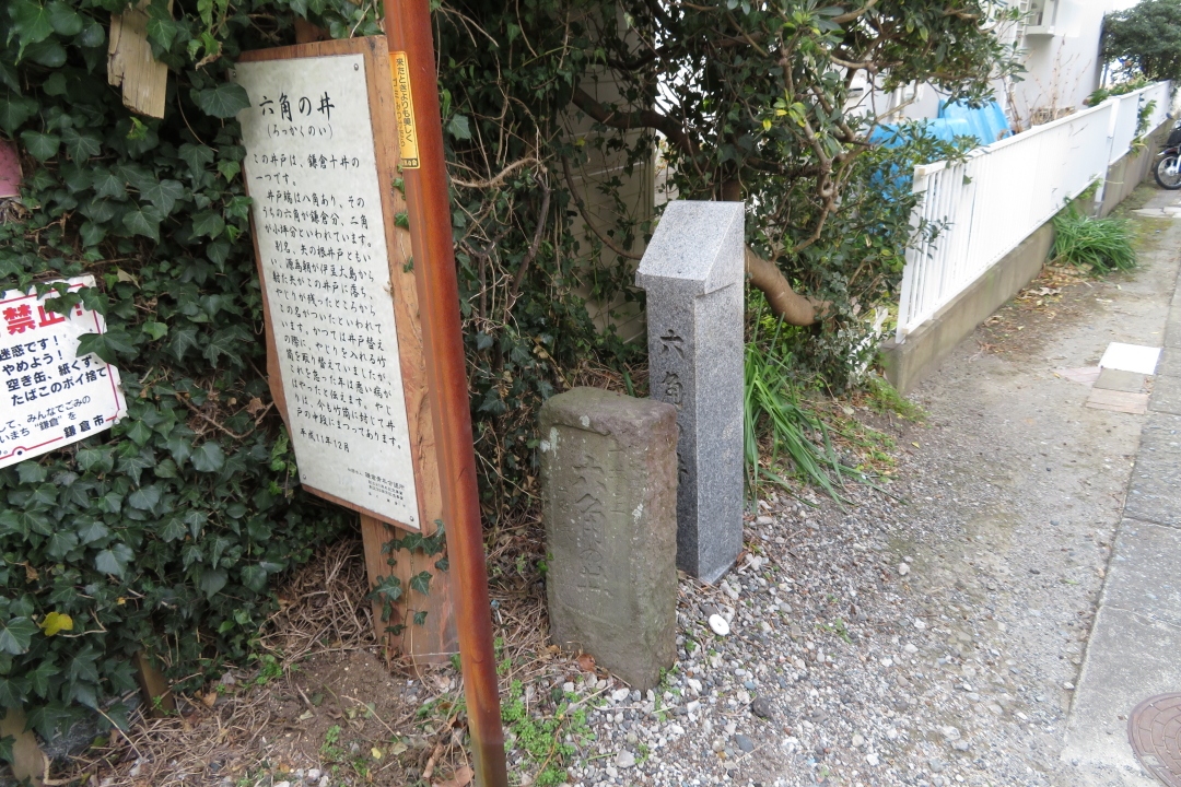 六角の井は、鎌倉十井(かまくらじっせい)の一つです。鎌倉十井は、鎌倉市内に点在している、井戸のことで、良質な水が湧いていたり、伝説が残っていたりしているところです。
