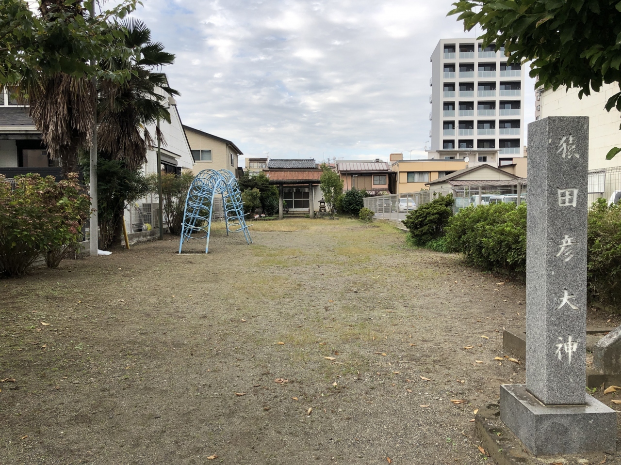 駐車場と駐車場の間に挟まれた、ちょっとした公園のような敷地の奥にたたずんでいるような神社です。拝殿も一見、失礼ながら公民館か何かにも見えるような建物で驚きました。観光でここだけを目指して来ることはないかもしれませんが、餃子通りにも近いですし、こんなところにあると驚くような立地の神社として立ち寄ってみてもおもしろいかもしれません。