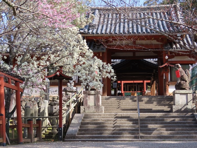 近鉄奈良駅からさらに東に向かい、東大寺・春日大社方面へ進んで左側にあります。鳥居が大宮通りに面しているのでわかりやすいはず。京に氷を納める役目をしていたことからこの社名がついたようです。鳥居の先に早々と桜が咲き始めていたのが印象に残りました。