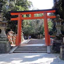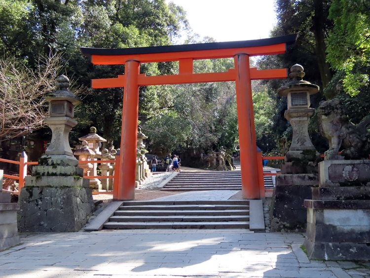 一之鳥居からはかなり離れています。東大寺から春日大社へ向かったため、途中から参道に合流し正面に現れる萬葉植物園の脇を過ぎて、進みました。短い石段があり、参道もひと区切り。さあいよいよこの先が本殿!と言える場所にある鳥居です。