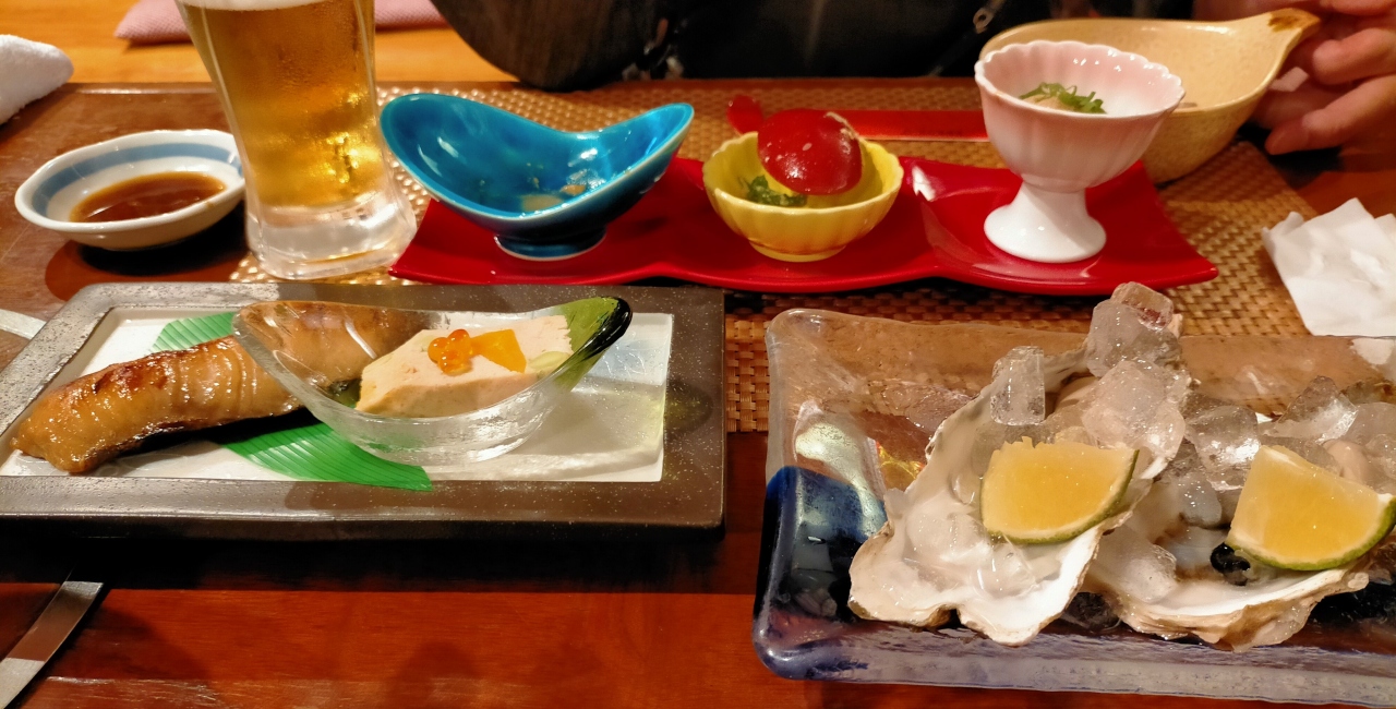 どれも美味しく、ウニは食べた後しばらく特有の風味が続き、マグロのお寿司は本間の中トロで、牡蠣はとてもクリーミーでした。