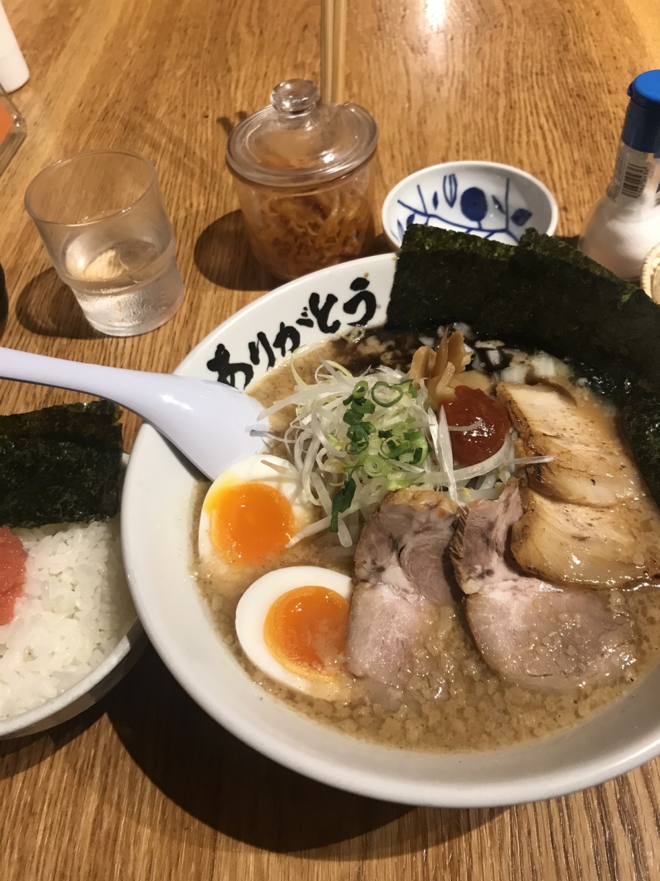 原宿駅と北参道駅の中間にある、野方ホープさんです。お店は移転してます。店内はピアノのジャズが流れる、ラーメン屋さんぽくはないおしゃれな雰囲気があります。とんこつスープは2種類から選べます。ゆで卵が無料サービスです?