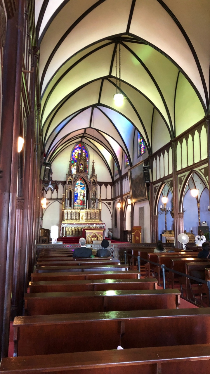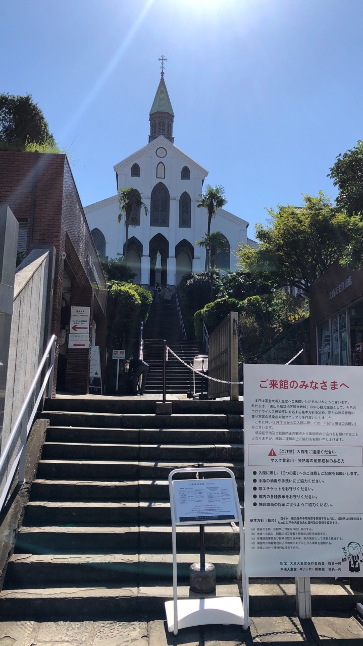 カトリック教会で、国宝・世界遺産です。入場料は1000円と高めでした。信徒発見の場としても有名です。敷地内は、天主堂の他、キリシタン博物館もあります。天主堂は斜面に建っており、オランダ坂などから見る大浦天主堂の姿も美しいです。