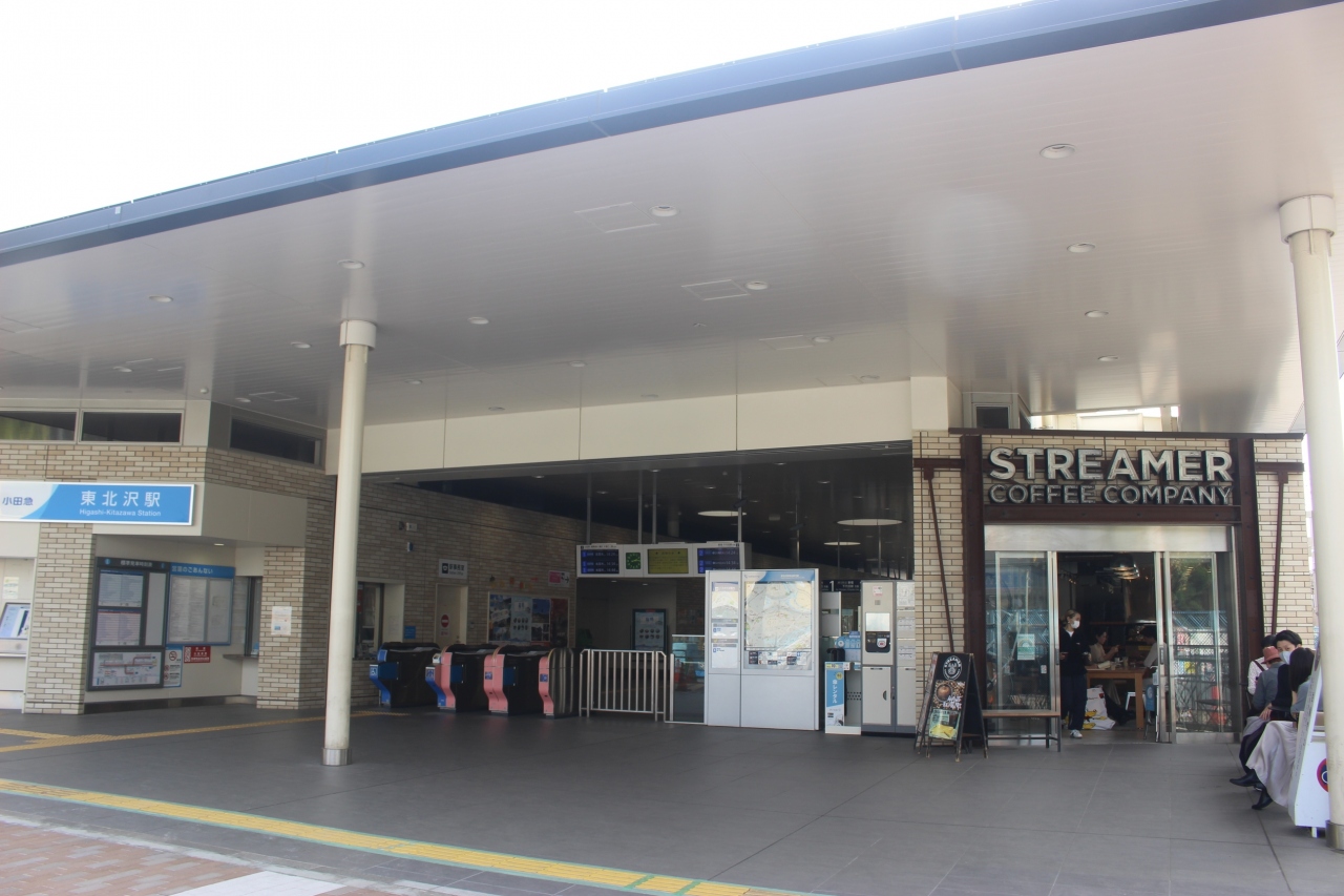 東北沢駅西口の改札口の横にあり、東北沢駅と建物は一体となっています。