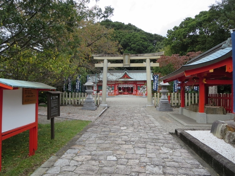 熊野発祥の地とも言われて由緒ある神社ですが、あまり訪れる人もいないようで寂れた感じもしました。紀元前からの歴史もあるようですが、本殿は焼失後再建されたとのことで、色鮮やかでした。近くには神社と関連する遺跡もありました。
