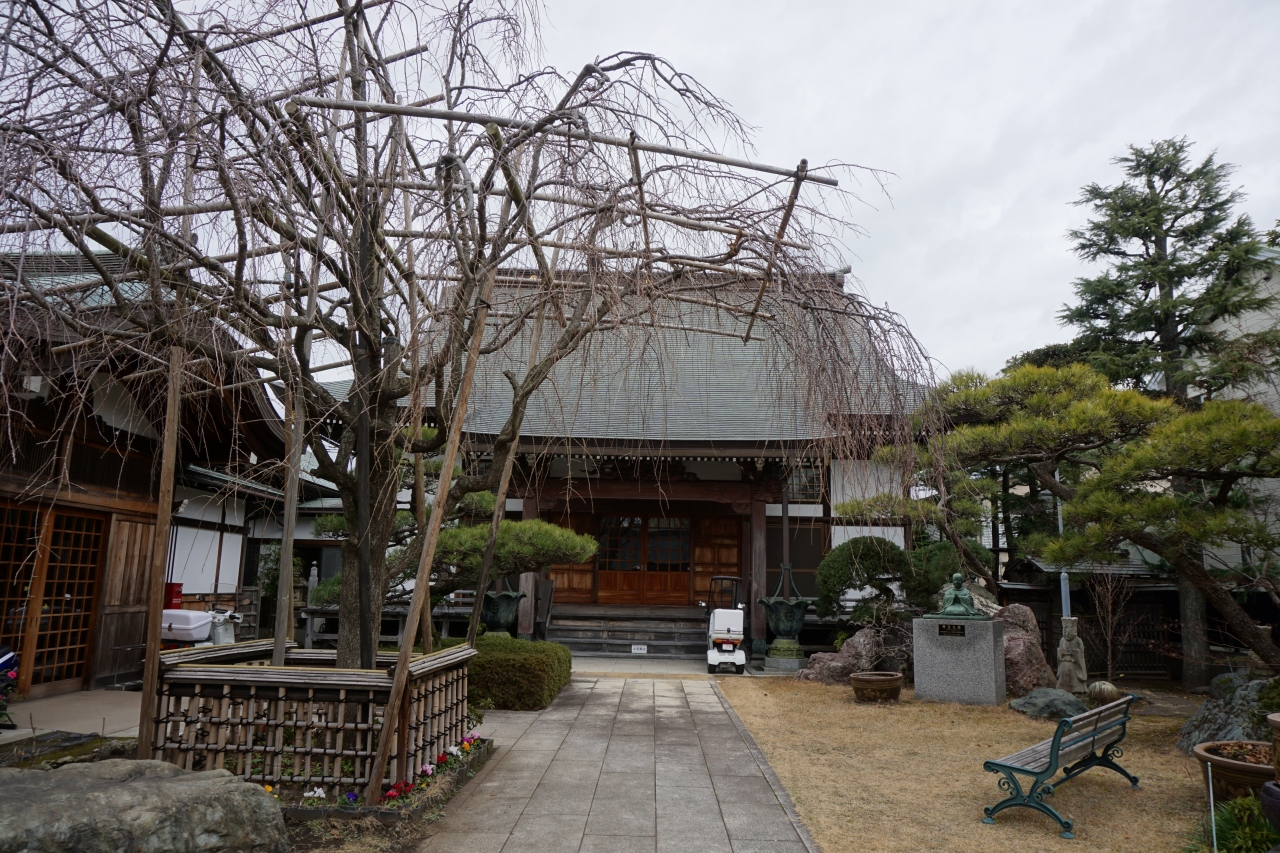 晴雲寺は、平塚の市街地にある浄土宗のお寺。二重だるきで青銅葺のきちんとした山門を入ると中はよく整備された芝生の庭。蓮鉢が並び、本堂の前の枝垂れ桜も雰囲気がありますねえ。ベンチなんかも置いてあって、ちょっとした公園のような境内です。