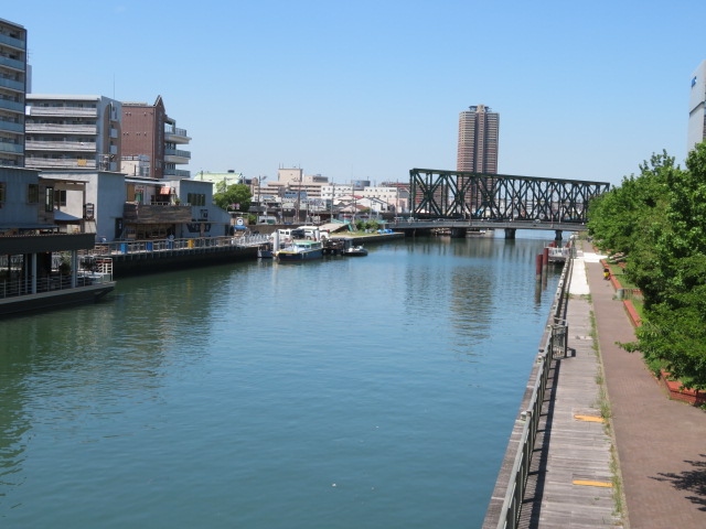 木津川といえば、京都のイメージがありますが、大阪までちゃんと流れてきてます。京セラドームの近くの岩松橋から眺めると、鉄橋が架かった風景に出会えます。このエリアは、京セラドームがあるものの、そこまで都会ではなく素朴な雰囲気です。