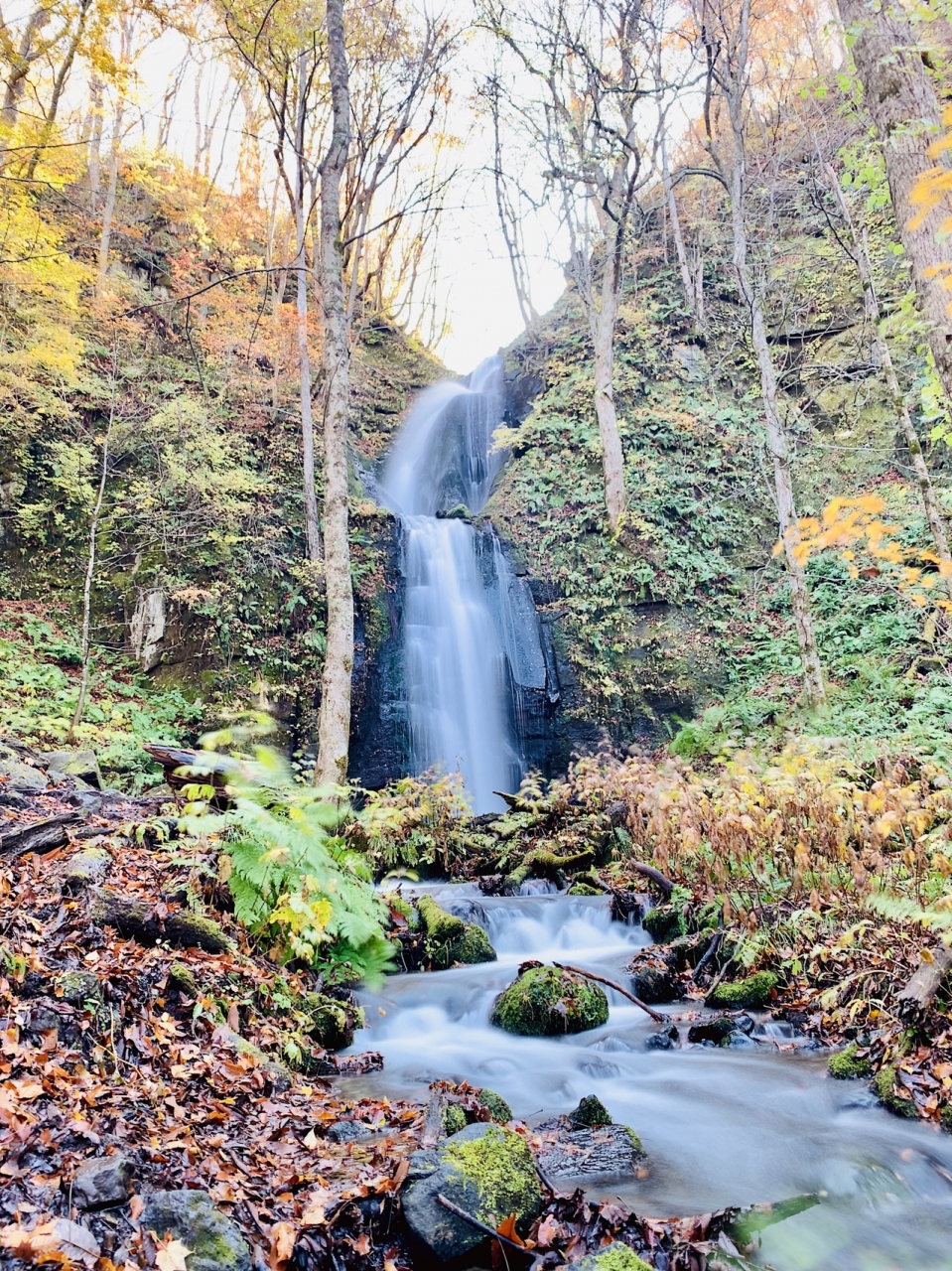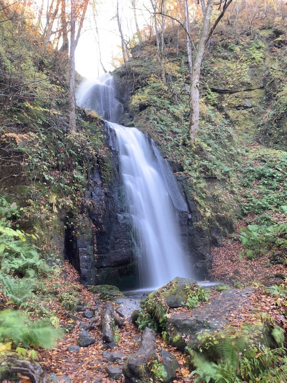 石ヶ戸から雲井の滝まで2.6km歩いて行きました。雲井の滝は奥入瀬渓流沿いでは銚子大滝に次ぐ観光スポットでバス停もあります。ここは川の反対側にあるので国道を渡る必要があります。滝の近くまで行くことができます。