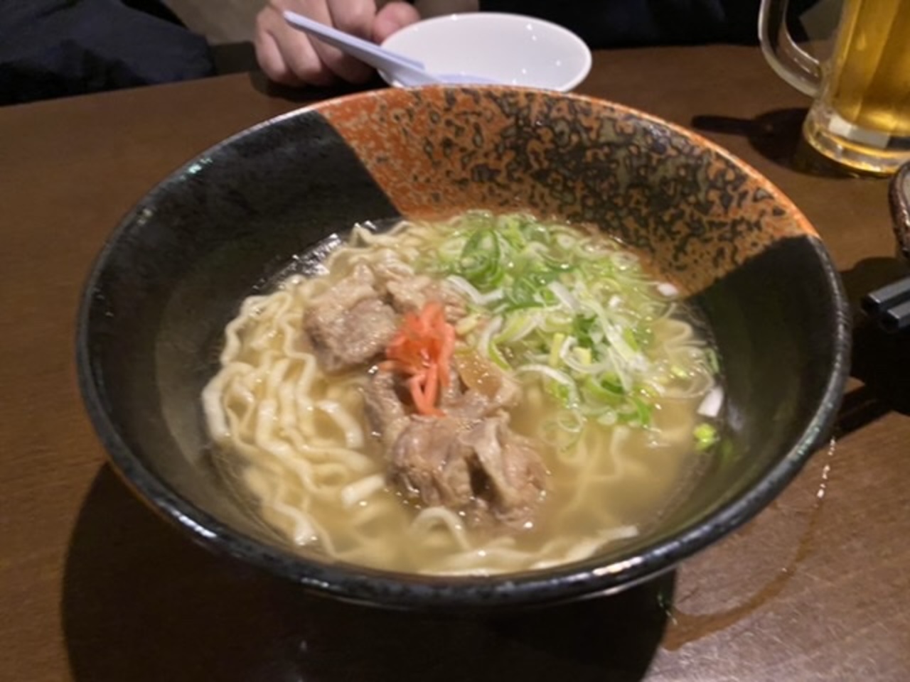 生ビールとソーキそばをたのみましたがお腹がいっぱいで食べきれませんでした。そりゃそうだよね。