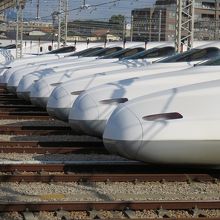 博多駅から車両基地までの山陽新幹線の回送線を旅客線化した路線。現在の博多南駅のある那賀川市で市街地化が進み、住民の要望で利用できるようになった経緯があるそうです。博多~博多南間は在来線扱いで乗車券200円+特定特急券100円で乗車が可能。それにしても車両基地の中の駅なのでホームから独特の景観が楽しめます。