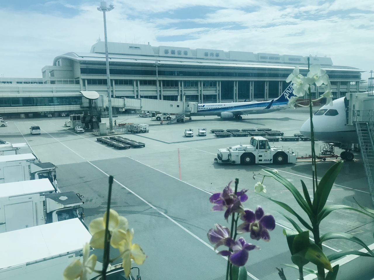 シーズンオフなので、人がまばらかと思いきや、結構な人が空港内にいて驚きました。免税店もありましたコスメが主になります。胡蝶蘭に見えたんですがたくさん胡蝶蘭が置いてあり驚きました。べつのお花かもしれません。