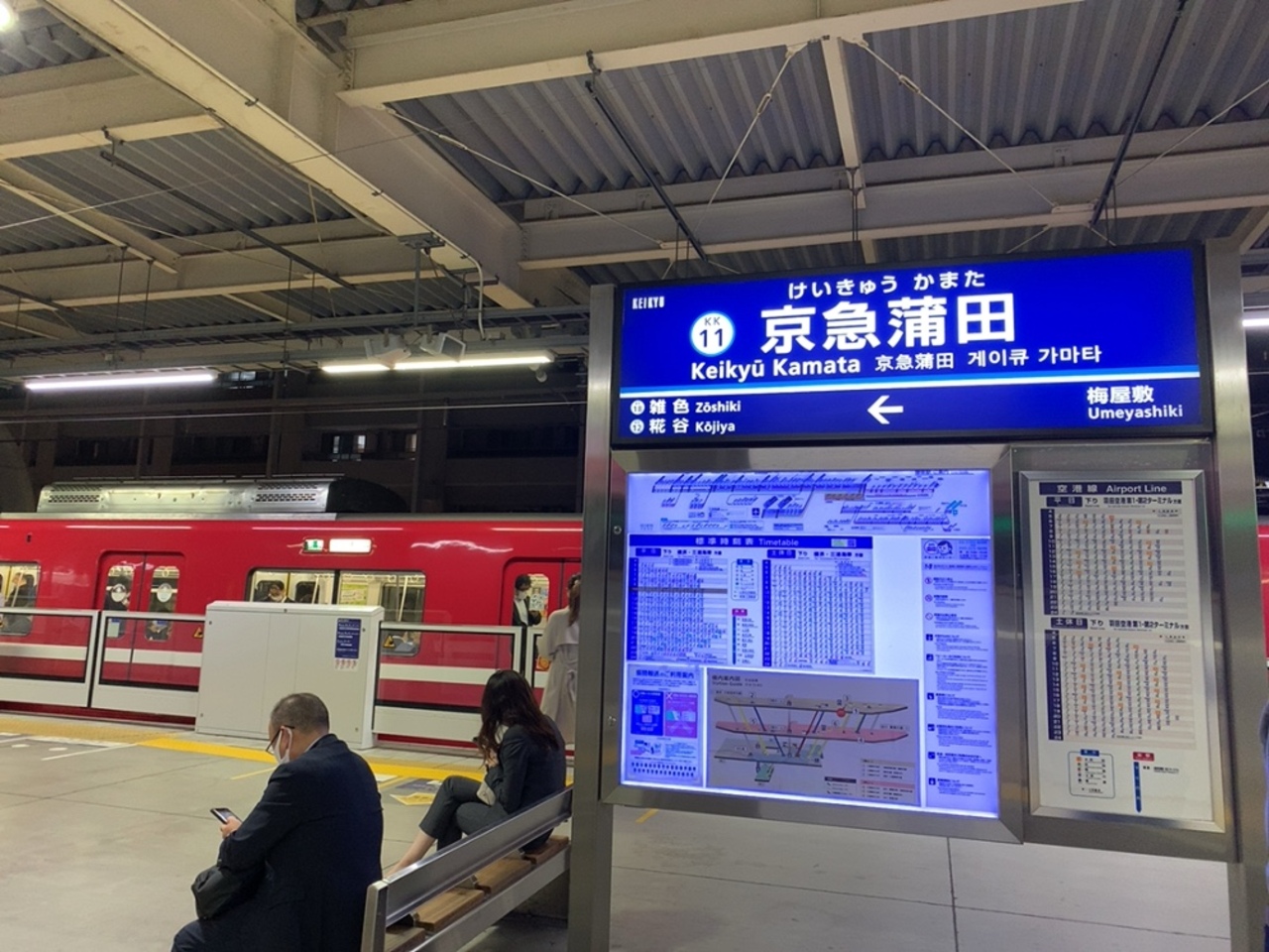 羽田空港方面へ行く電車は、京急蒲田駅から乗車しました。 出発ホーム階が分かれているので、ホームにある案内をちゃんと確認しましょう。