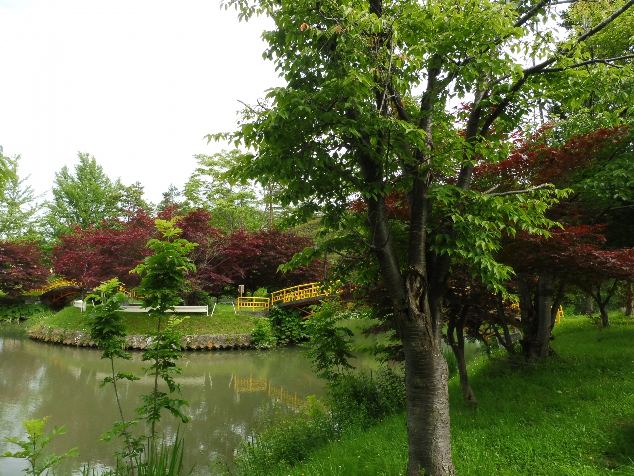 この公園は一般住宅と公園との敷地がなんか曖昧な感じで住宅地の中に開けた場所と池が有るといった感じです。