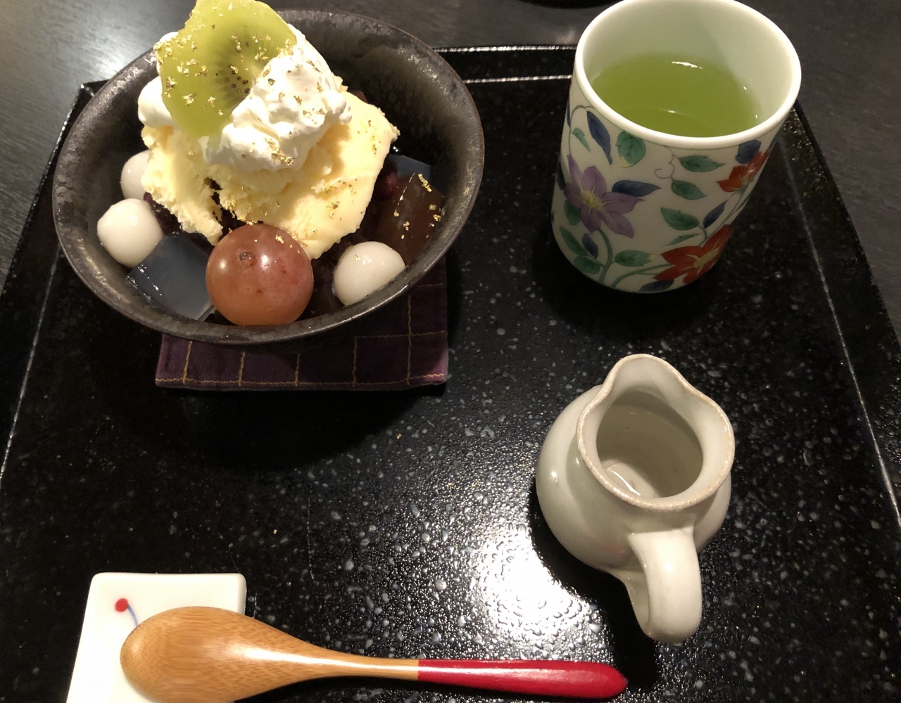 長町武家屋敷群の端の一角にあります。歩き疲れてお茶しに寄りました。門は新しく、一戸建てのようでちょっと戸惑いました。中は土間のようですが、床の間もありました。他のお客がいず貸し切りでした。私は白玉ぜんざい付き抹茶。小豆が甘すぎず美味しかったです。娘は紅茶ぜんざいアイス。リキュールはお好みで。娘は紅茶ゼリーがさっぱりしていたと。