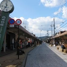 鳥取県境港市、境港駅から水木しげる記念館まで続く800メートルの道。両側は商店街。