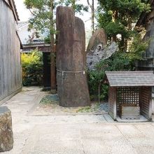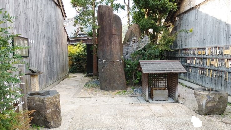 店舗の脇にたたずむ小さな神社だが、入口の目玉おやじの石が目印。こちらはさわってぐるぐる回すことができる。