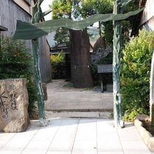鳥居はよーく観察してみると一反木綿がついている。妖怪一色の通りに溶け込んだユニークなスポットだと感じた。