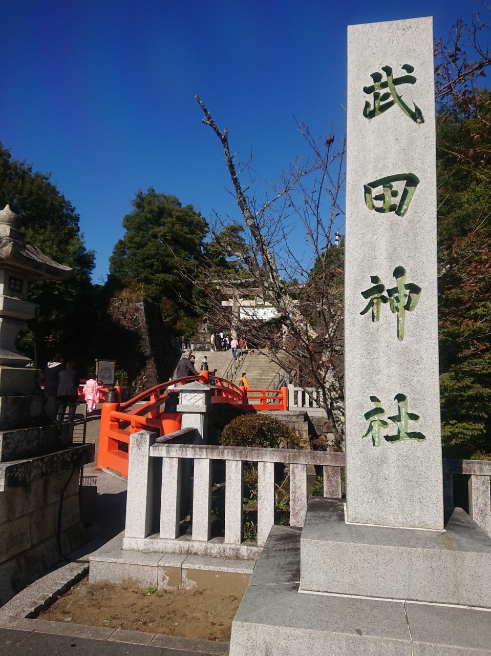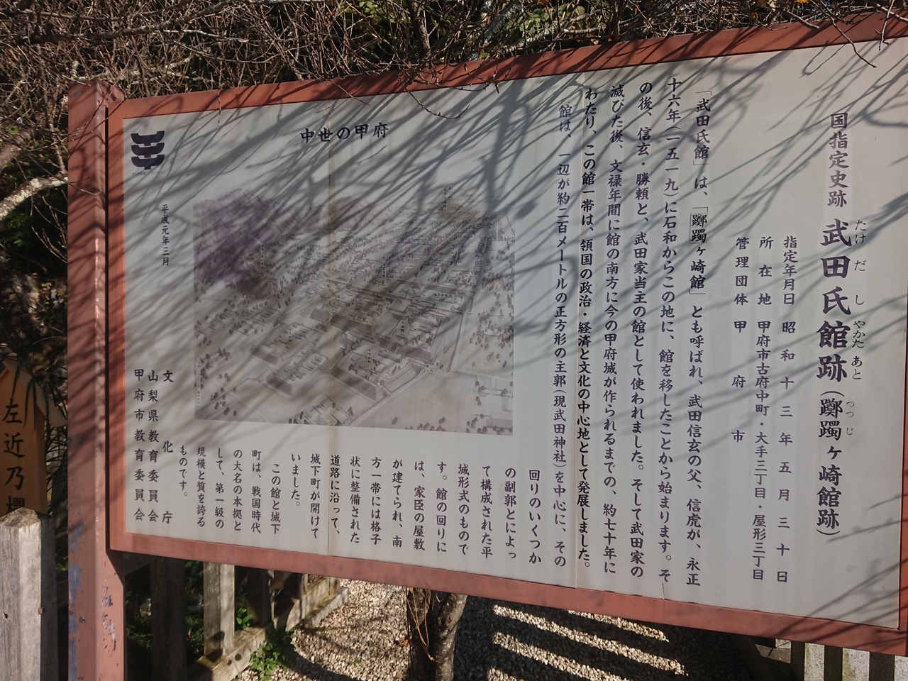 躑躅ヶ崎館跡の武田神社に念願かなって参拝しました。歴史好き、戦国時代好きなら信玄公は外せません。11月初頭の季節柄、七五三で来られたご家族が多く、甲府の皆さんの七五三は武田神社で済ます方が多いのかなと感じました。手水舎が武田菱の形なのもよかったです。