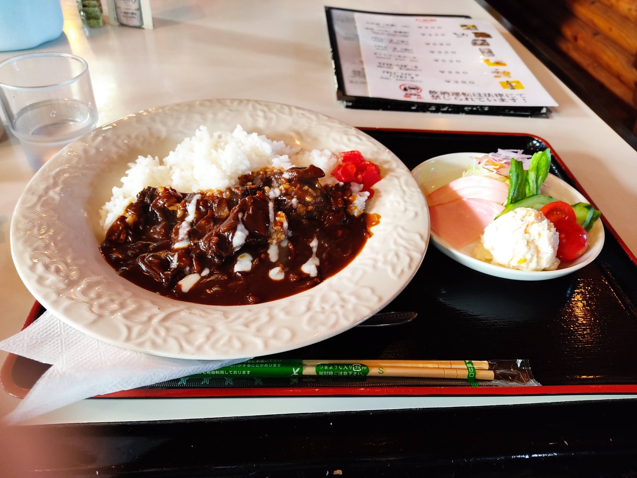 阿蘇駅併設のレストラン。電車で阿蘇駅まで来たなら、阿蘇駅周辺での食事はこちらほぼ一択となるためか、結構な混雑で順番待ちになっていた。こちらハヤシライスが定番とのことで頼んでみたが、肝心の阿蘇牛の肉が小さすぎて味がよくわからんといった感じだった。