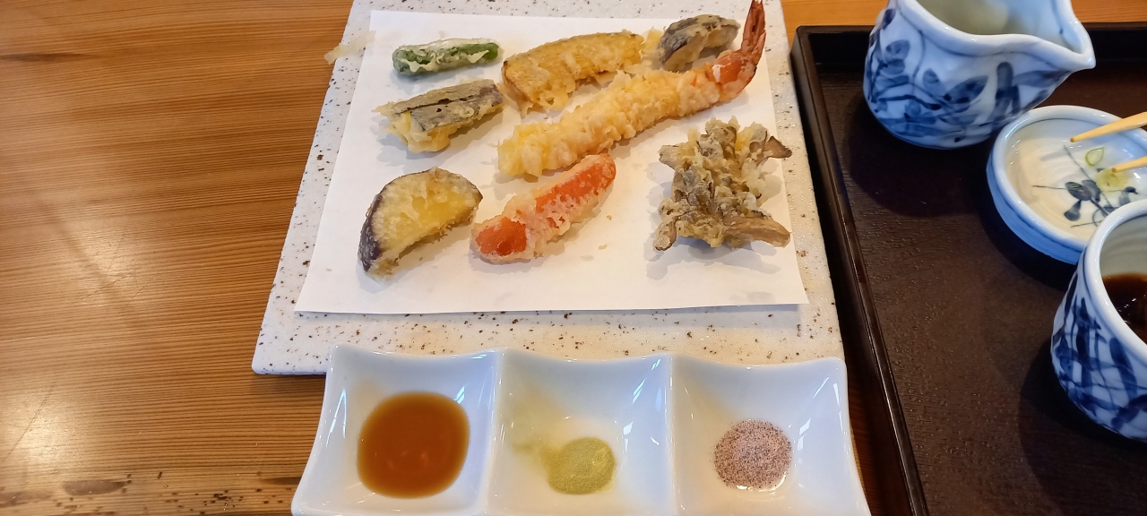 平日お昼頃家族でランチへ。少し待ってカウンター席へ。ランチメニューから城下そばコース2600円を注文。三種盛りから始まり季節の天ぷら、ざるそば、そば茶のプリンどれも美味しくおススメです。ペイペイ電子クーポン使えます。店頭2台と隣有料駐車場あり。