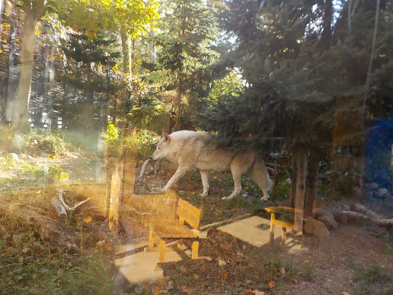 オオカミの歩く姿はりりしくてかっこよかったです。ちらっと目が合いそうになった時は