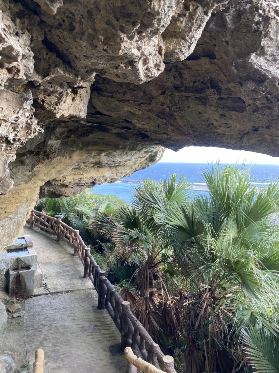 祖納集落南西にある標高100mの切り立った断崖で、自然にくり抜かれてできた展望台になっています。