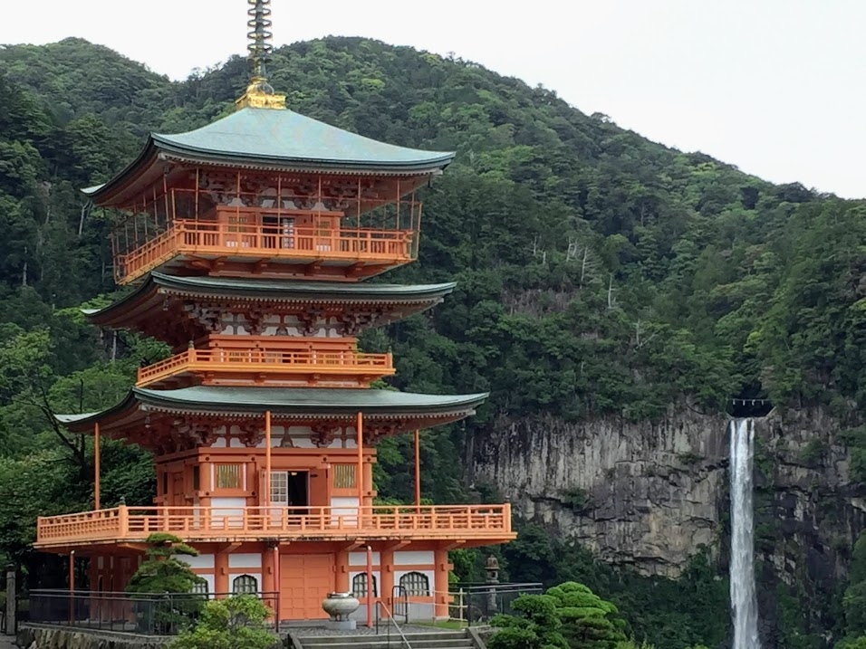 数分歩いたところに三重塔があり、那智の滝との景観が見事です。