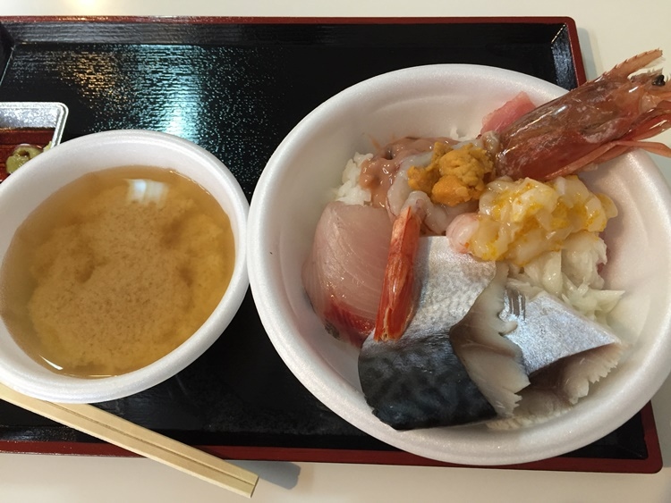 10枚券1500円、5枚券750円の固定額のチケット制の「自己プロデュース型」海鮮丼です。市場内の参加店の特色を見極めてCPを高めるには少し技量がいるかもしれません。さあその時期の青森の旬の魚は? うに・いくら偏重の函館朝市とは違った素朴さがありますが、釧路・和商市場、勝手丼のサケマス系へのこだわりと比較するとちょっと物足りない。チケットは人数分より少し多めに購入して端数を分け合ったほうが丼が充実するかもしれません。
