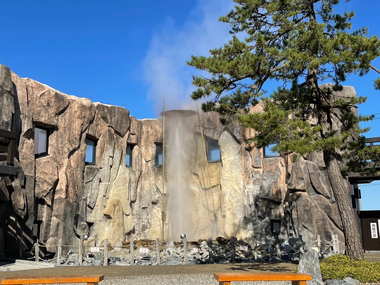 間欠泉も10分から15分間隔で拭き上げるので、足湯に浸かりながらゆっくりと見る事が出来ます。