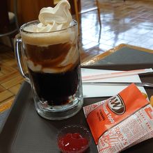 サーティーワンとお店が一緒になっています。ポテトとドリンクのセットにしました。ルートビアは11月(平日)限定でソフトクリームトッピングが無料だそうでお願いしました。エンダーのハンバーガーはおいしくて好きです。