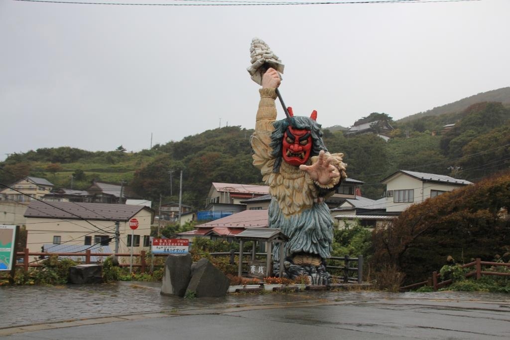男鹿半島をドライブしていたら、でっかい「なまはげ」が見えてきました。