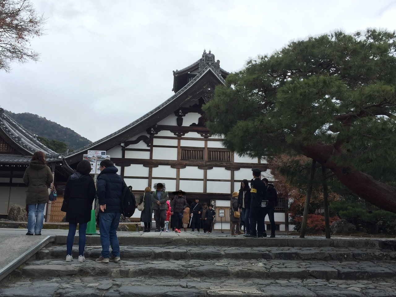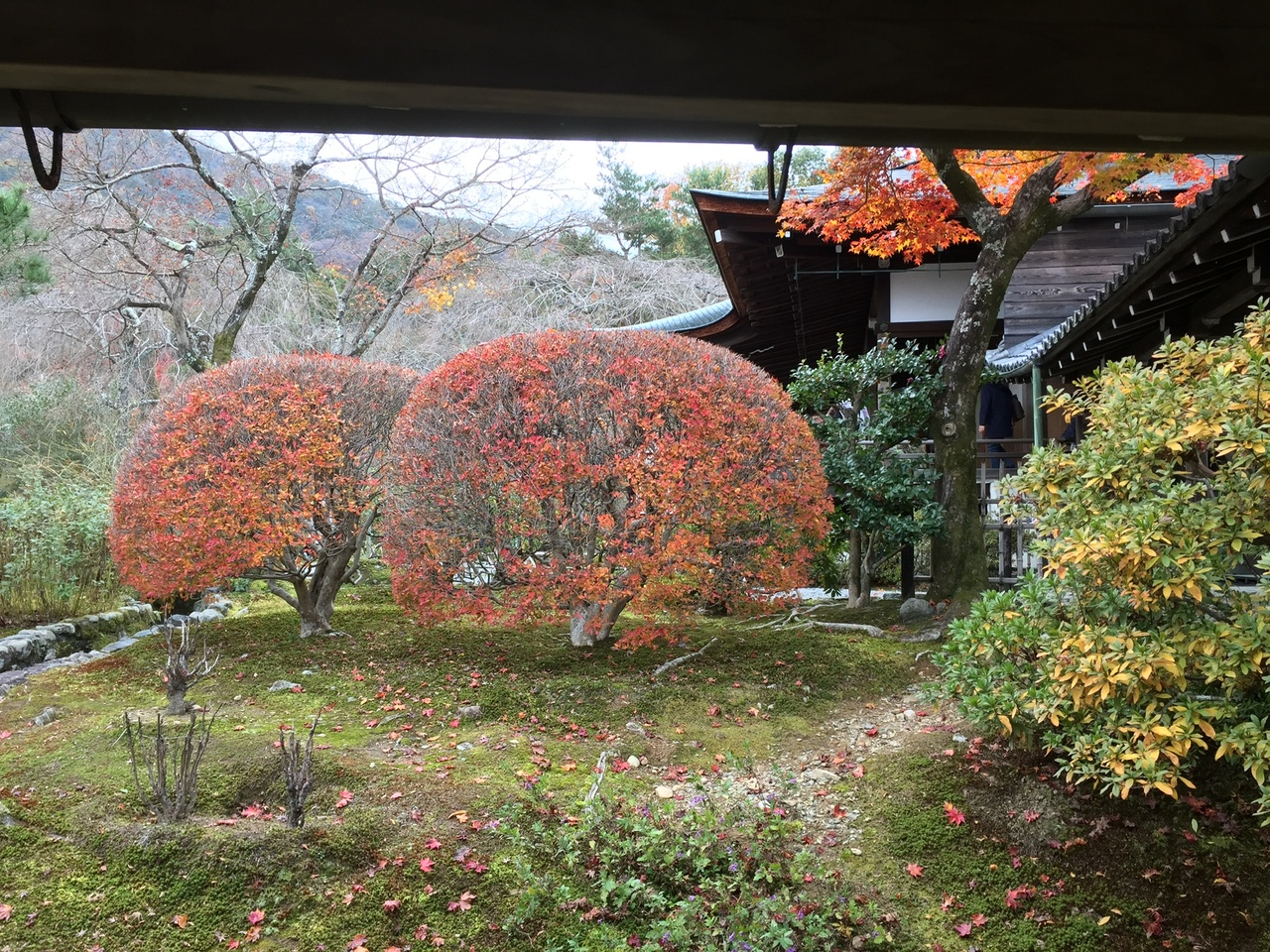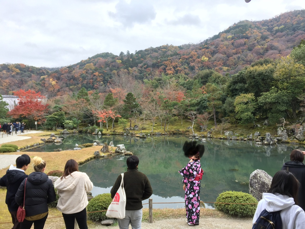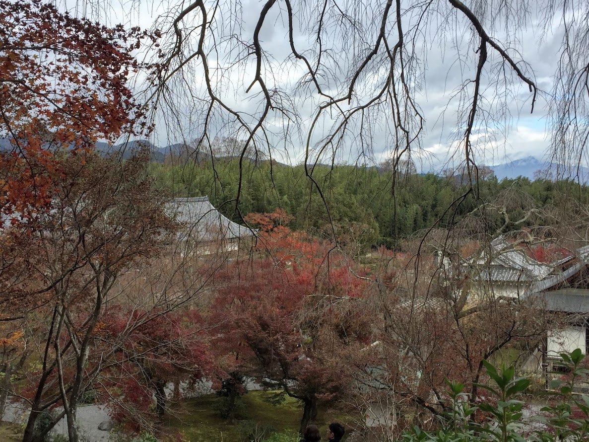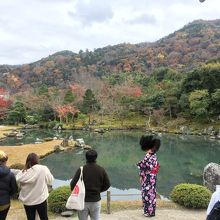 天龍寺の曹源池庭園は嵐山や亀山を借景にした池泉回遊式の庭園です。その景色は本当に見事で美しいです。12月の頭の週で紅葉はほぼ終わっていましたが、夢窓国師の作といわれる庭園には、多くの人がおみえになっていました。方丈から見ても、どの角度から見てもそれぞれに美しいです。望郷の丘に少しのぼって上から見る景色もよかったです。