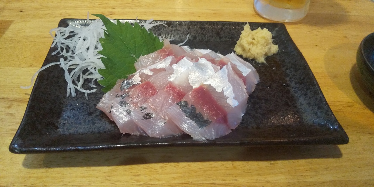 さっぱりした緑茶ハイを飲みながら、美味しい鯵の刺身を食べる。