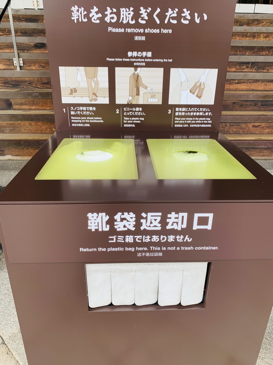 中にもは入れます。手前で 靴袋に靴を入れたままご参拝します。